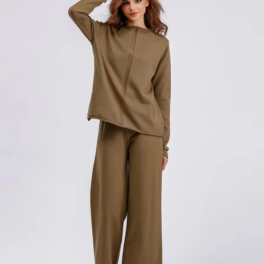 Luxury 2-Piece Fall Winter Sweater Set for Women Solid O-Neck Knitted Long Pant Suit Solid Knit Set